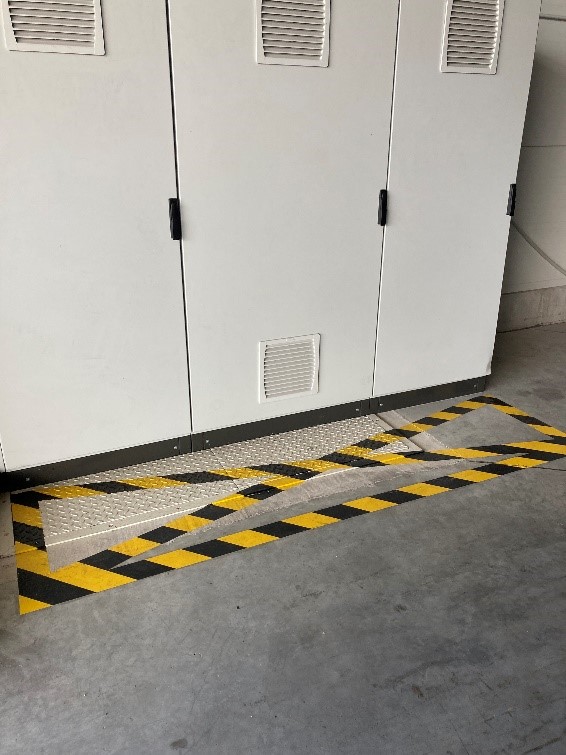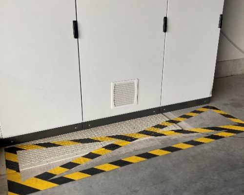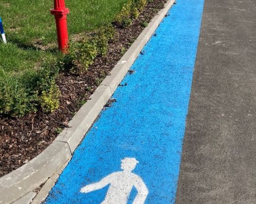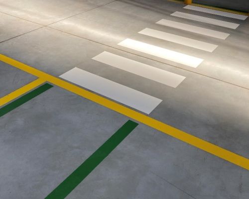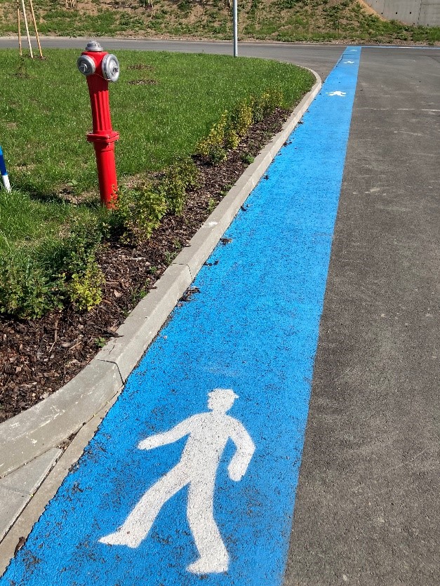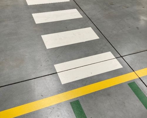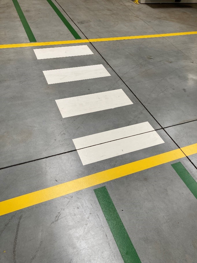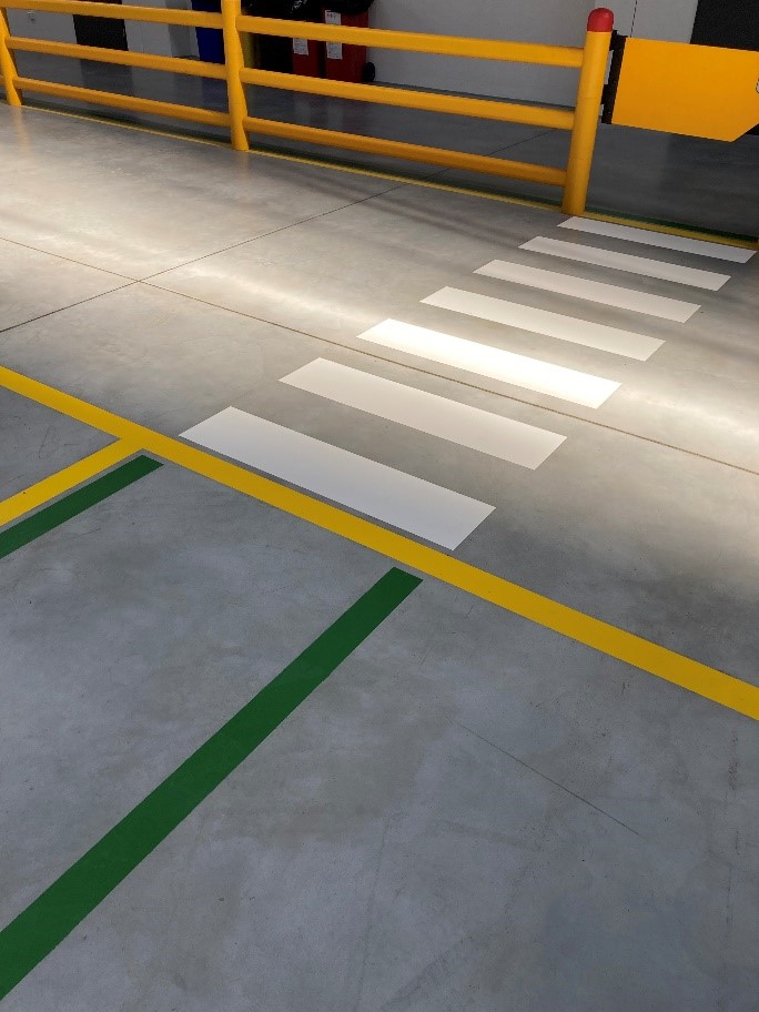 několik kilometrů žlutých a zelených čar, přechodů, označení prostorů před rozvaděči a nakreslení panáčků na cestu ve venkovních prostorách firmy