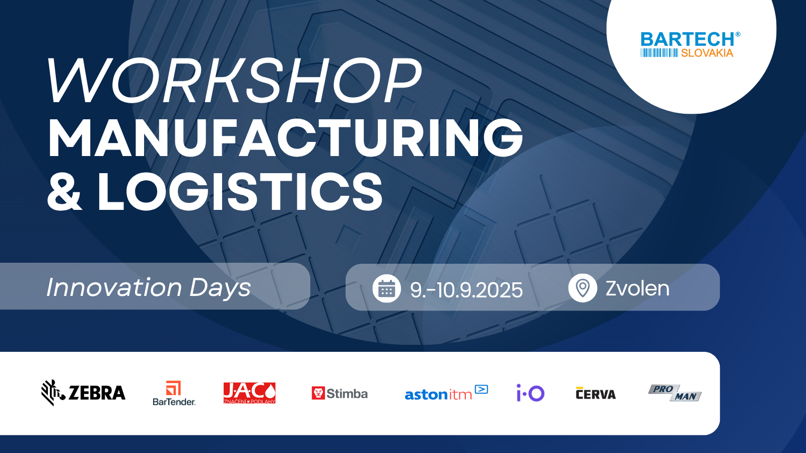 Celý program zde: https://bartech.sk/manufacturinglogistics-innovation-days-zvolen/