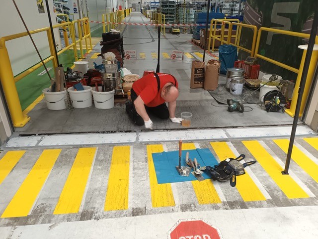 V minulých dnech jsme realizovali rekonstrukci problematického přejezdu mezi halami.