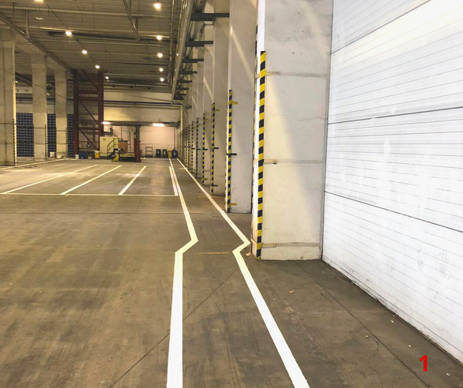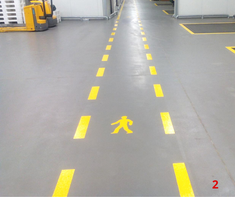 _________ Přes plné čáry by neměla přejíždět manipulační technika, použijte je v případech jednoznačně oddělené cesty pro pěší. (foto 1)