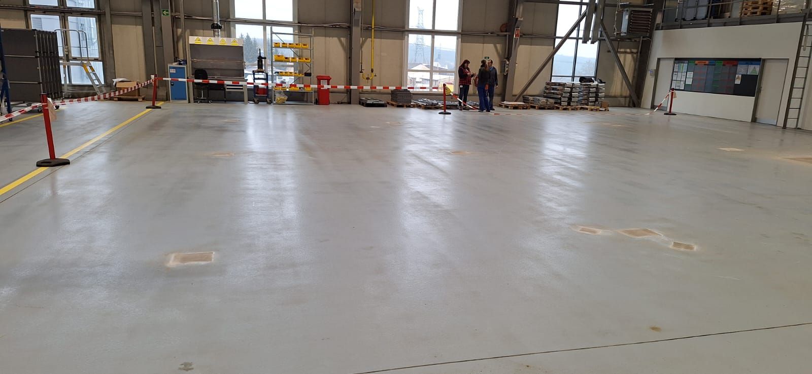 Rozsah:Zadělání děr po odstranění konstrukcí a epoxidová stěrka 65 m²