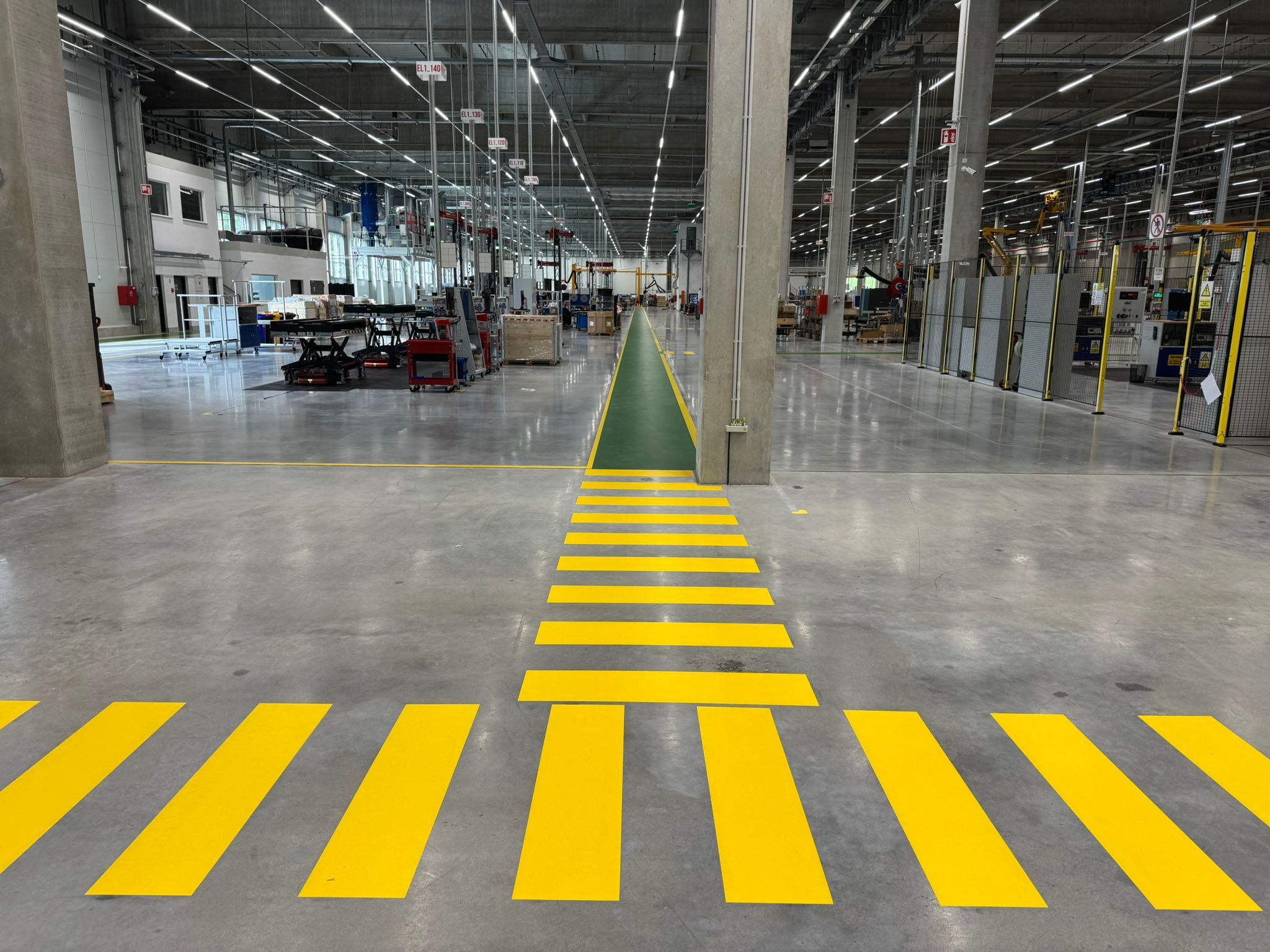 - Koridory pro pěší v novém výrobním závodu