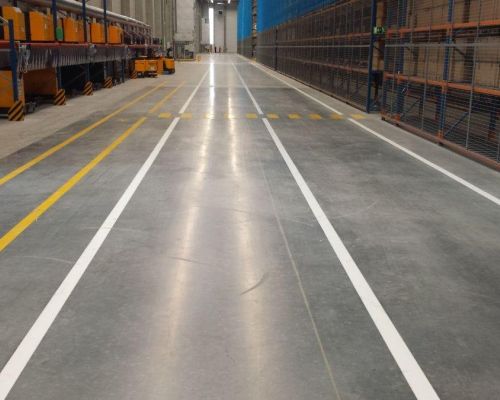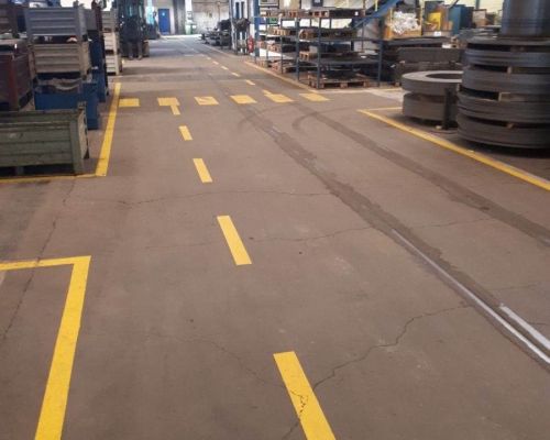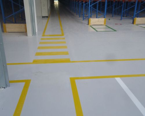 Bezpečnostní značení ve skladech a na pracovištích doplňujeme i realizaci podlah ve skladech – dokážeme najít to správné řešení právě pro Váš provoz.